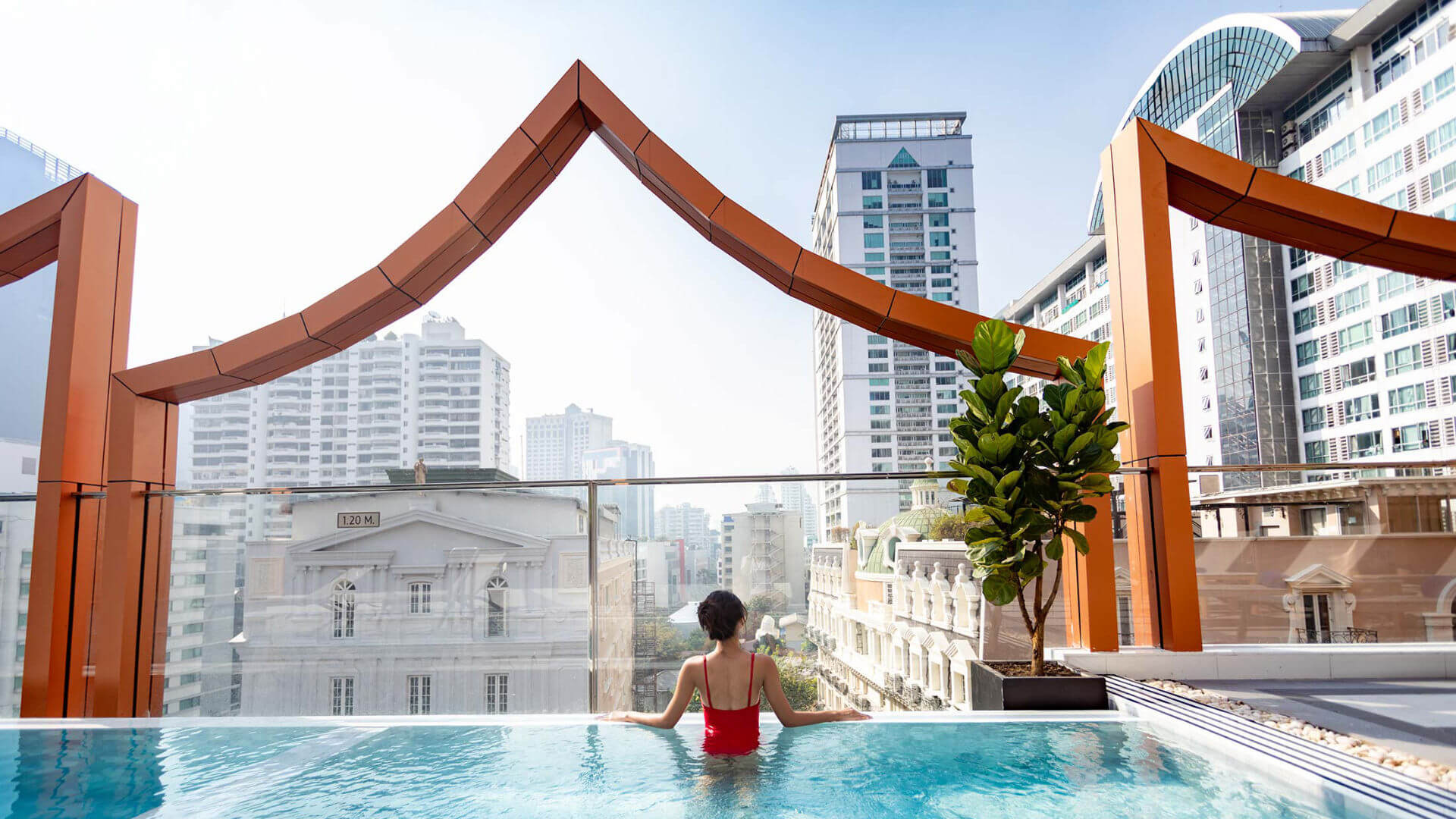 - Rooftop swimming pool: A quiet setting above the city where guests can swim, cool off, or simply take a break between meetings.